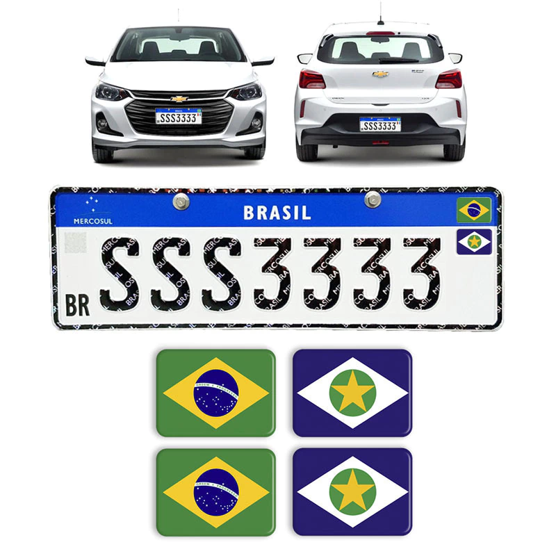 Adesivos Bandeiras Brasil e Mato Grosso Placa Nova Mercosul de Carro Resinados