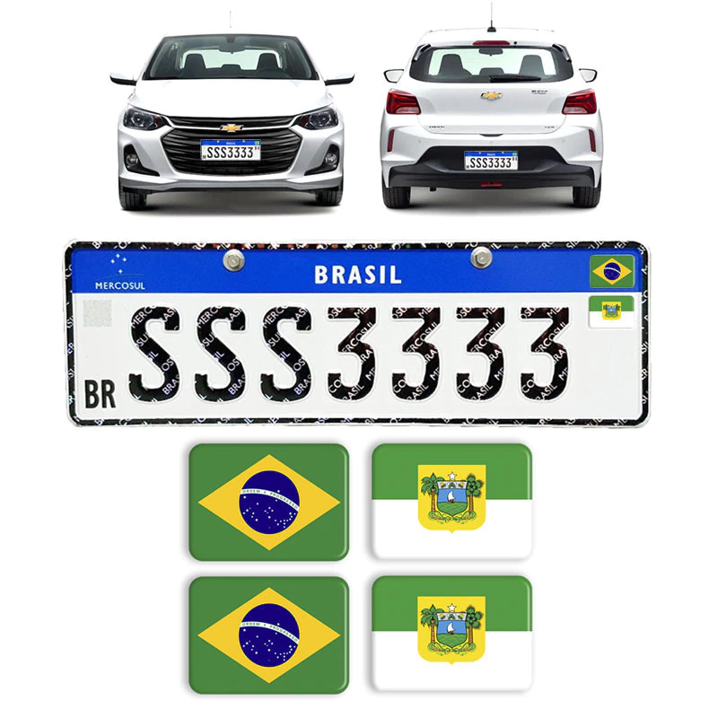 Adesivos Bandeiras Brasil e Rio Grande do Norte Placa Nova Mercosul de Carro Resinados