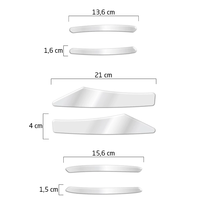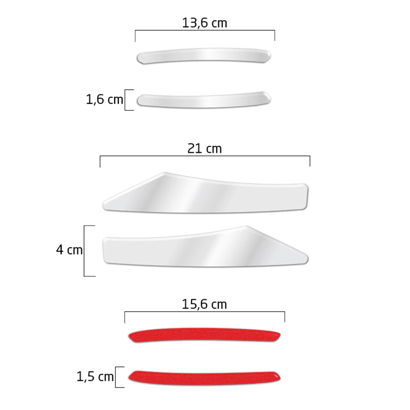 Adesivo Traseiro / Fabricado em Poliéster Cromado ou Vinil Refeltivo / Dimensões: 15,6 x 1,5 cm