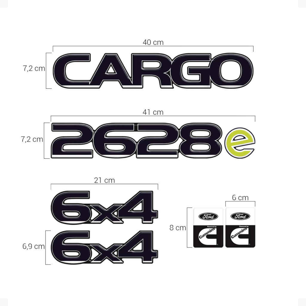 Kit Adesivos Compatível Caminhão Cargo 2628e 6x4 Cummins Emblemas Resinados Azul Escuro - Pequeno