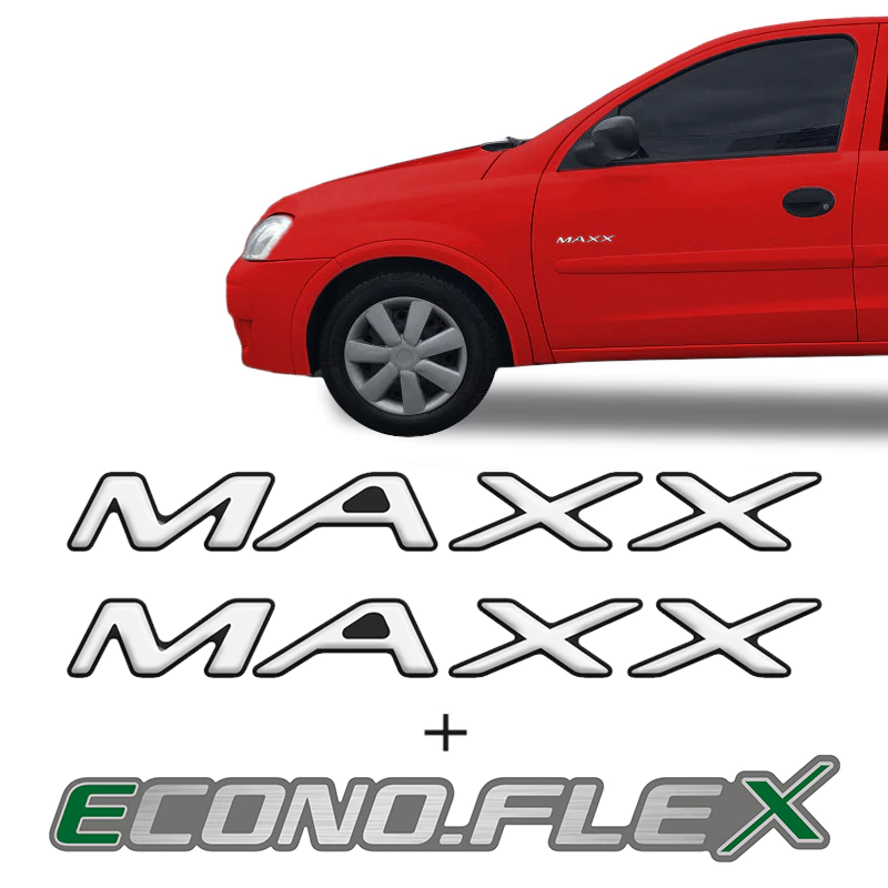 Kit Adesivos Corsa Maxx Emblema Lateral Resinado + EconoFlex Traseiro -