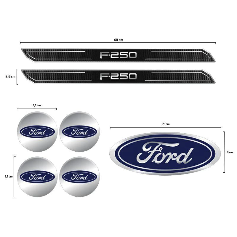 _x000D_Adesivos F250 Emblema Frontal Calotas e Soleira Protetora 2 Portas