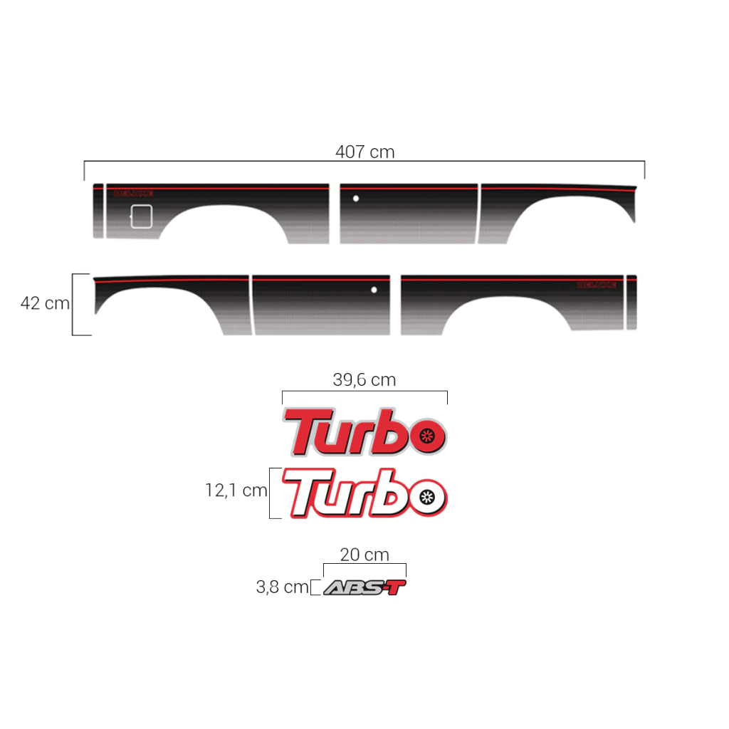 2 Adesivos (Turbo) / Fabricado em Vinil Branco / Dimensões: 39,6 x 12,1 cm