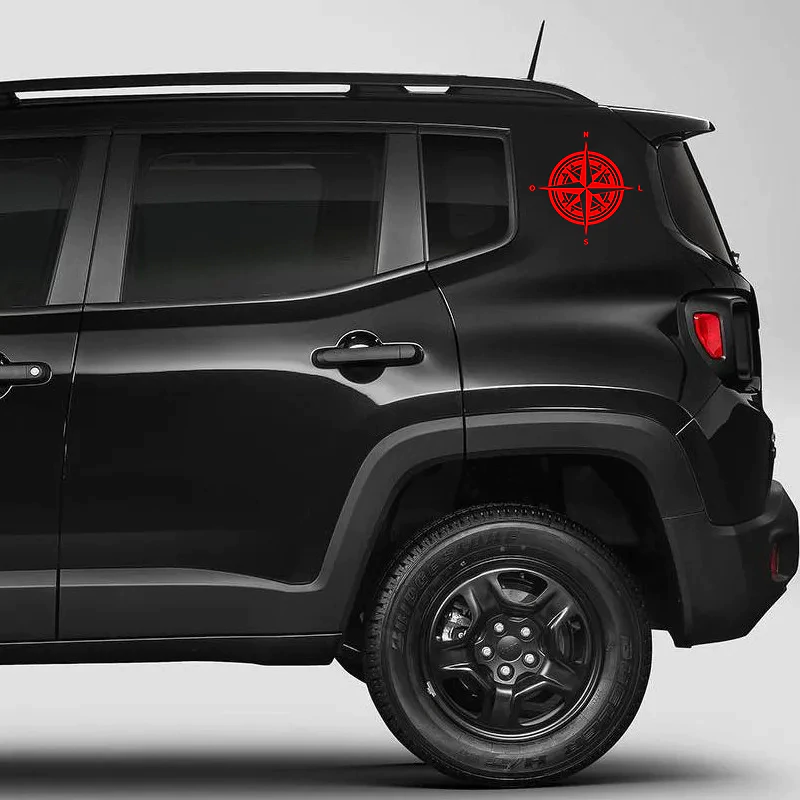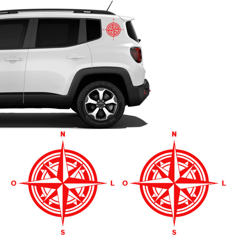 _x000D_Par De Adesivos Jeep Renegade Bússola Rosa dos Ventos Emblema Lateral Vermelho Decorativo