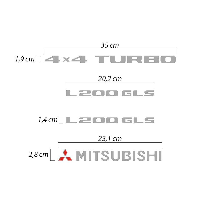 Kit Emblemas L200 Mitsubishi Gls Quadrada 4x4 Turbo 2001/2002 Adesivos Prata