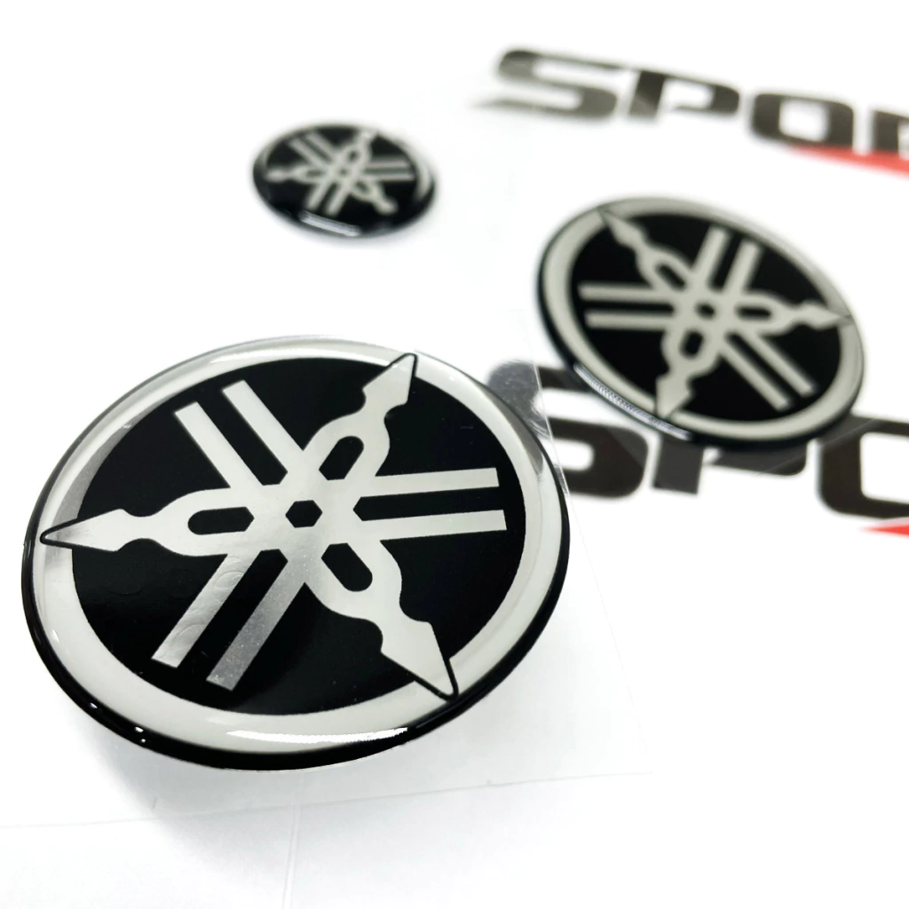 2 Emblemas Logo Resinados / Fabricado em Poliéster Escovado / Dimensões: 45 mm