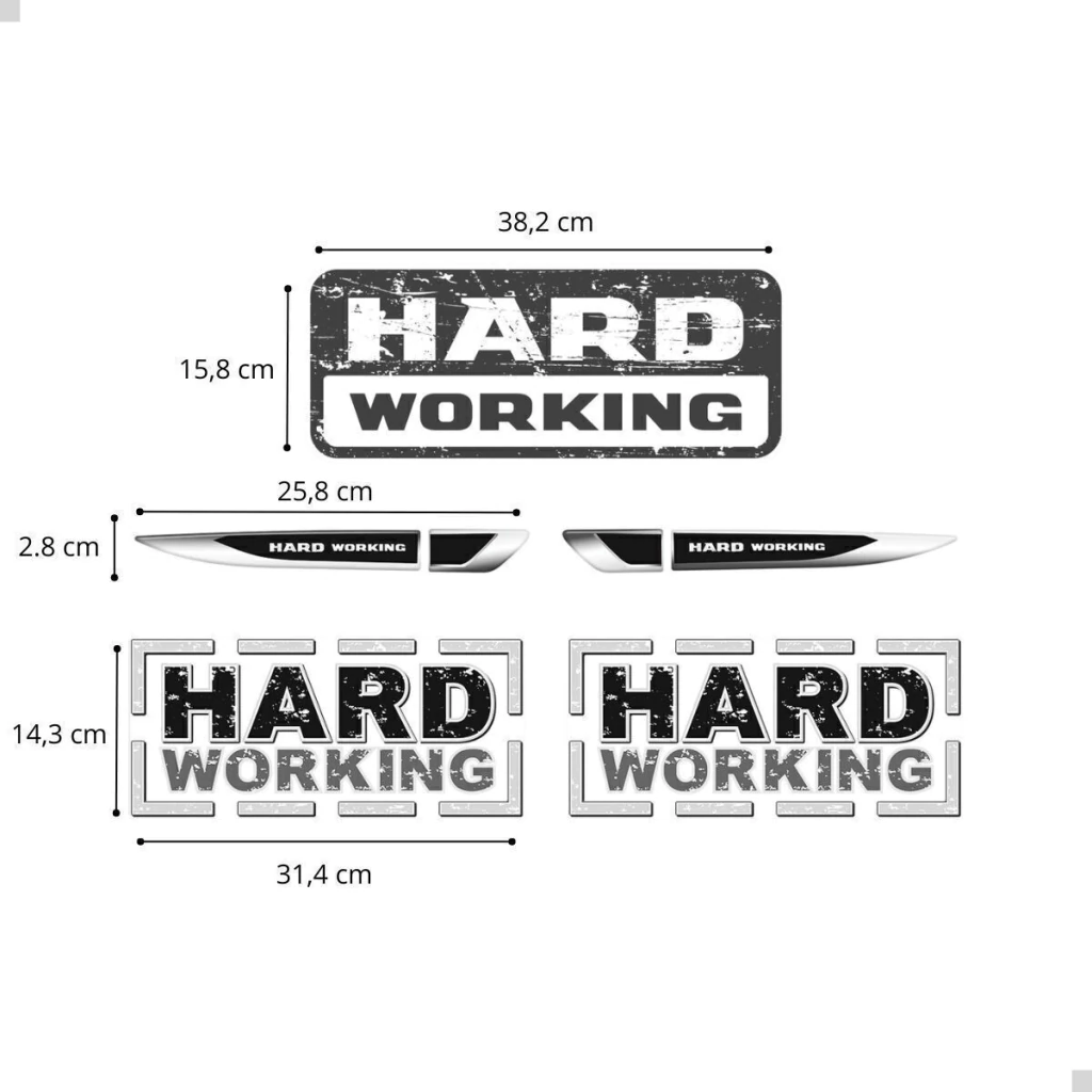 1 Adesivos Hard Working Traseiro / Fabricado em Vinil Transparente / Dimensões: 38,2 x 15,8 cm