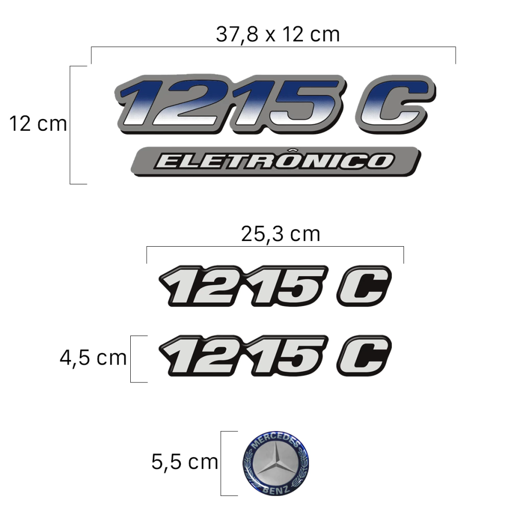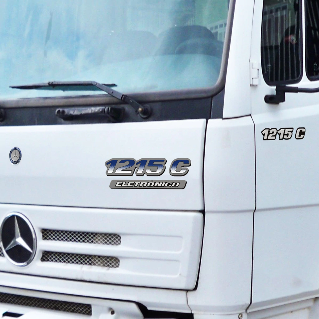 Kit Adesivos Completo Caminhão Mercedes-Benz 1215 C Eletrônico + Emblemas Logo Resinado -