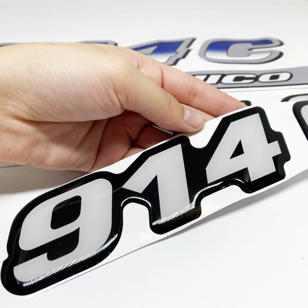 2 Emblemas Resinados 914 C Lateral / Fabricado em Vinil Branco / Dimensões: 23,3 x 4,7 cm