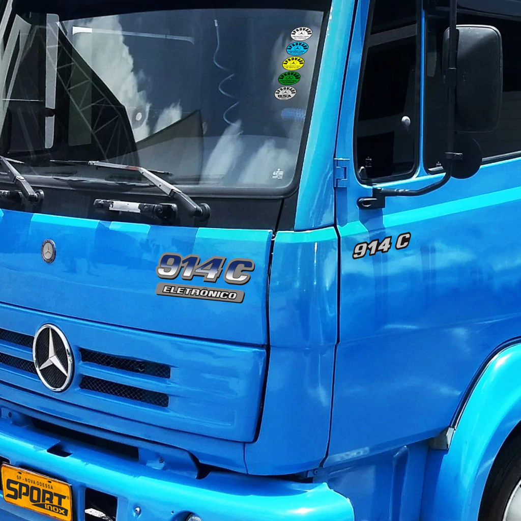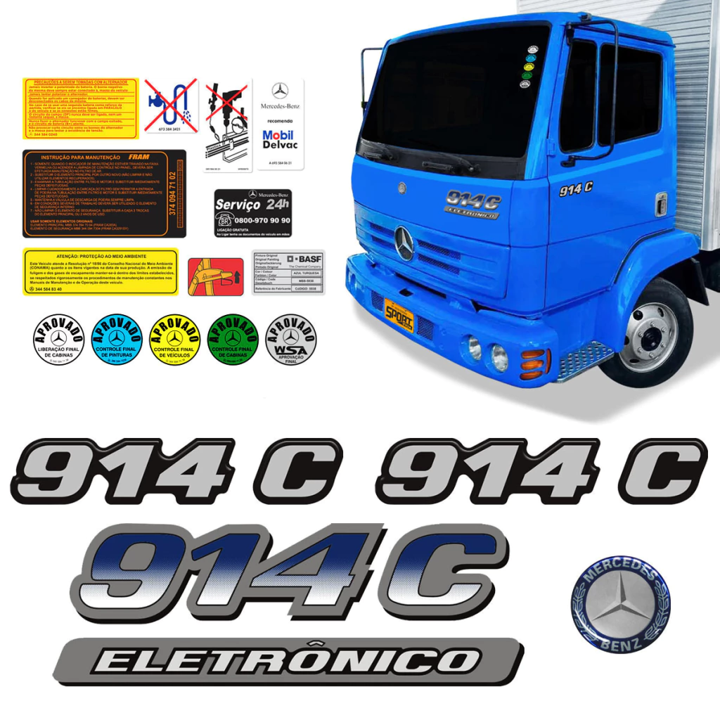 Kit Adesivos Completo Caminhão Mercedes-Benz 914 C Eletrônico + Emblemas Logo Resinado -