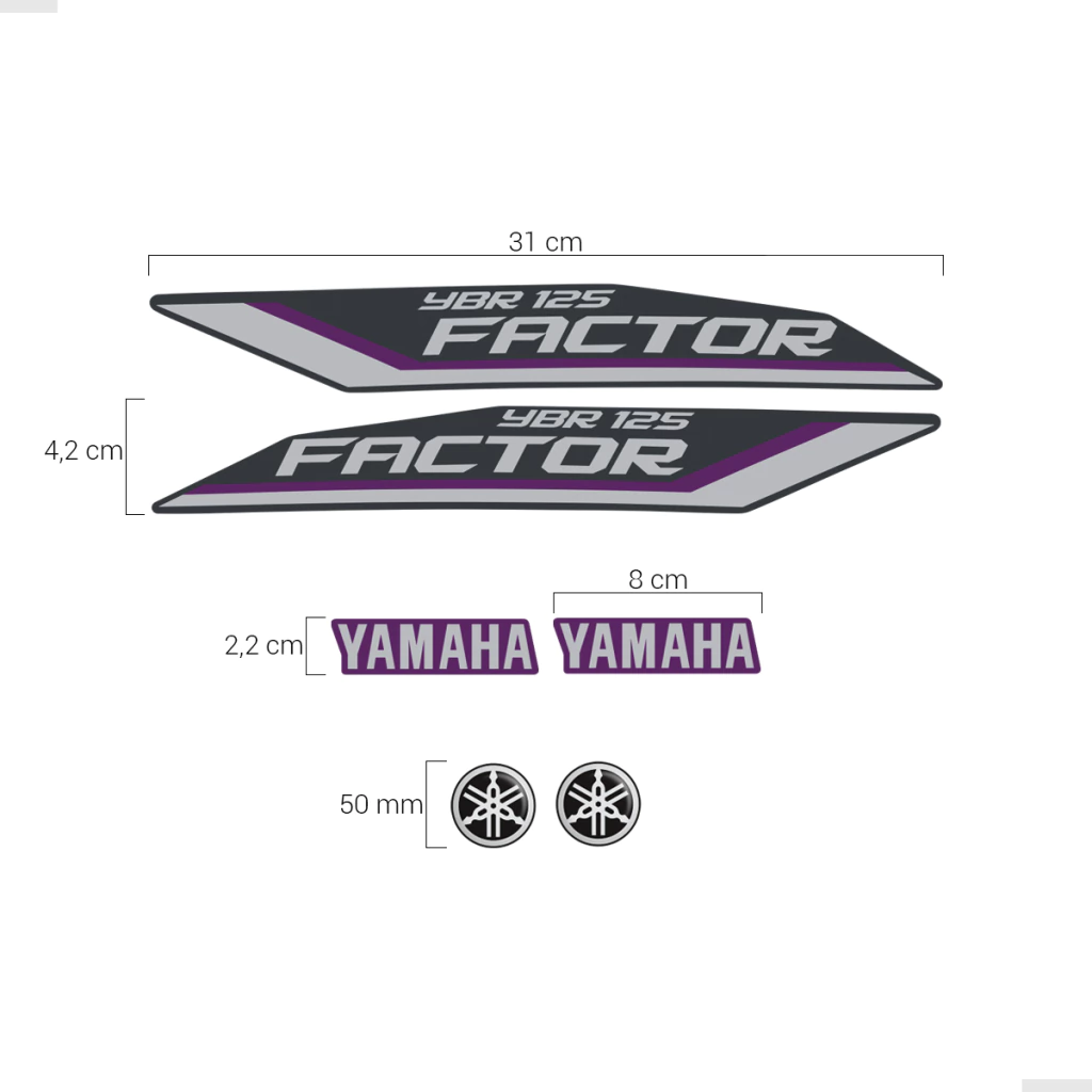 Kit Adesivos Para Yamaha Factor 125 Ybr 2012 Moto Roxa + Emblemas Resinados - Genérico