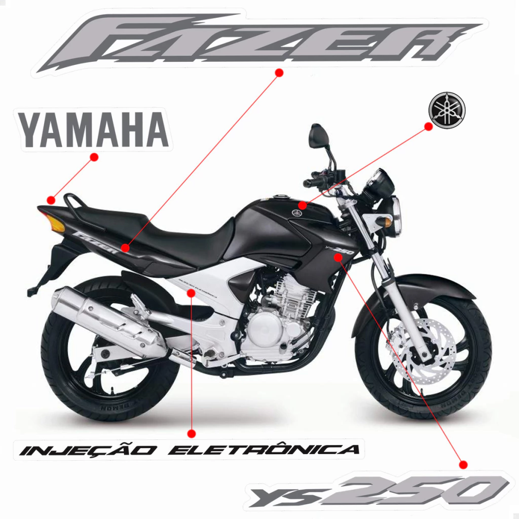 Adesivo Para Yamaha Fazer 250 Ys 2006 Moto Preta + Emblemas Resinados