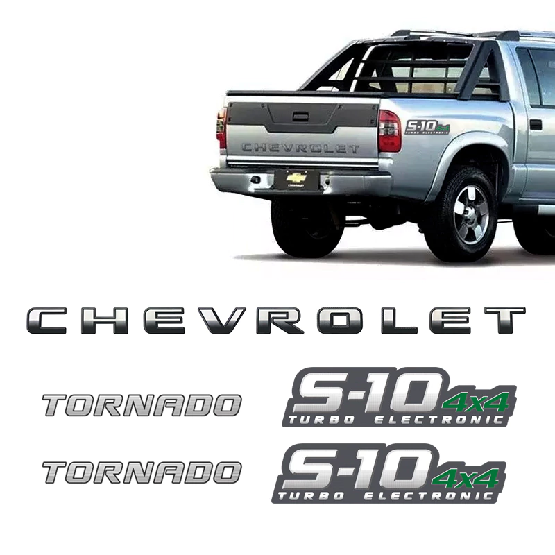Kit Adesivos S10 Tornado Prata, 4x4 Turbo Electronic Verde + Faixa Traseira Chevrolet -