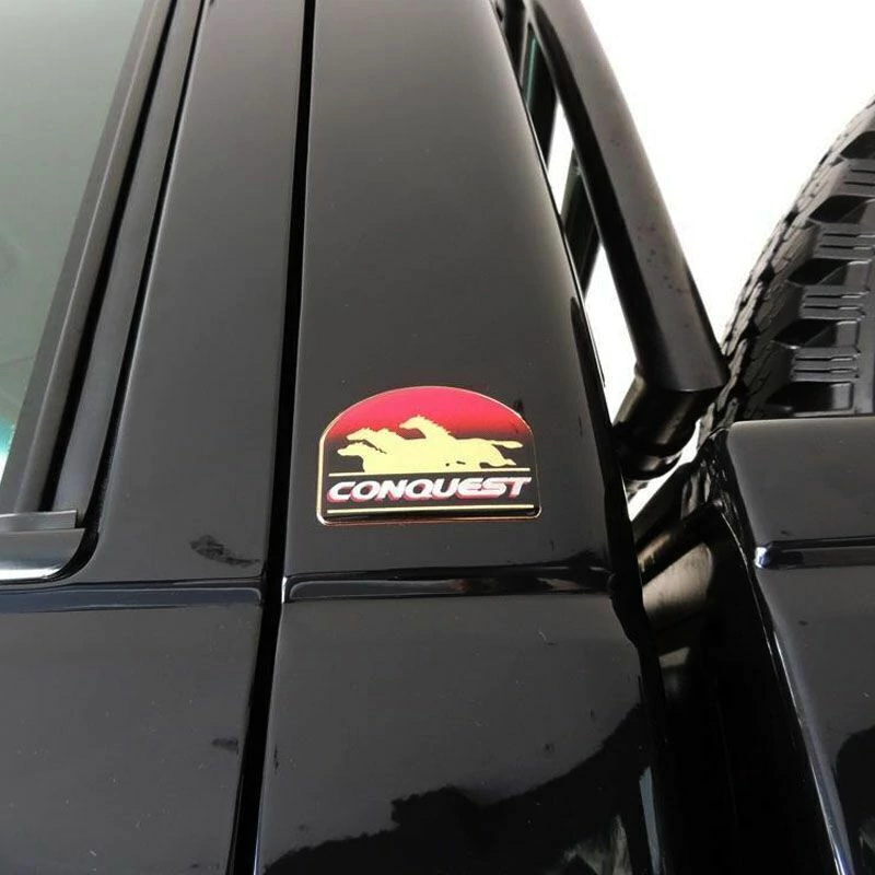 1 Adesivo Resinado Conquest Traseiro / Fabricado em Poliéster Cromado / Dimensões: 25,2 x 2,7 cm