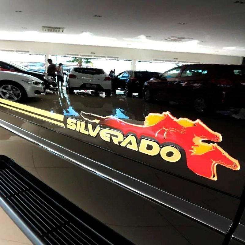 2 Adesivos Resinados Silverado / Fabricado em Poliéster Dourado / Dimensões: 28,5 x 2,8 cm
