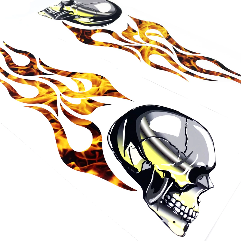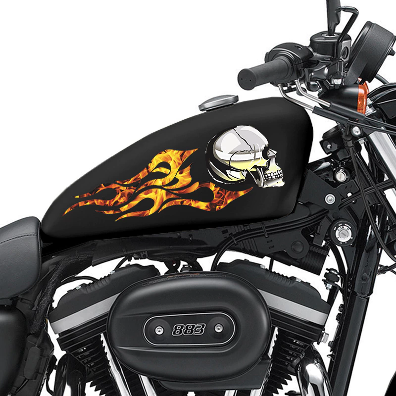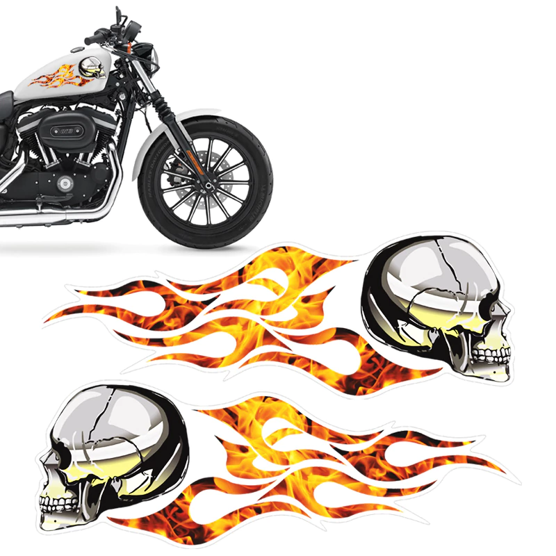 Par De Adesivos Tanque Harley Davidson Caveira Em Chamas Faixa Lateral