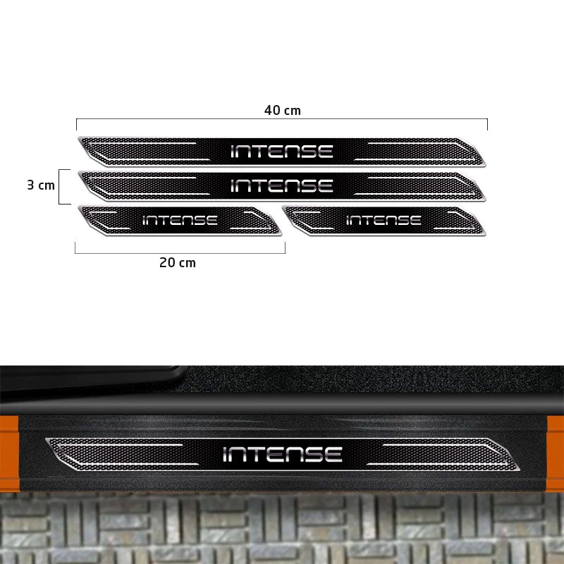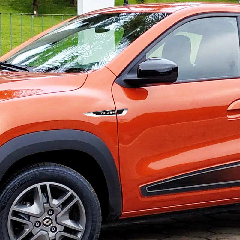 Kit Emblemas Resinados Renault Kwid Intense 2018/2020 Aplique Lateral Decorativo + Soleira Da Porta Com Proteção Black Over