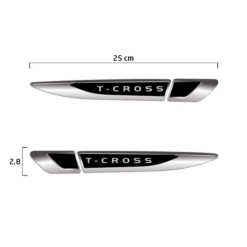 Par De Emblemas Resinados T-Cross 2020 Aplique Lateral Decorativo