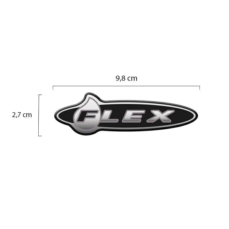 1 Adesivo Flex / Fabricado em Poliéster Cromado / Dimensões: 9,8 x 2,7 cm