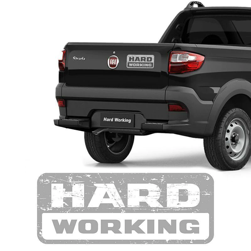 Emblema Hard Working Prata para Fiat Strada Preta 2018/2019