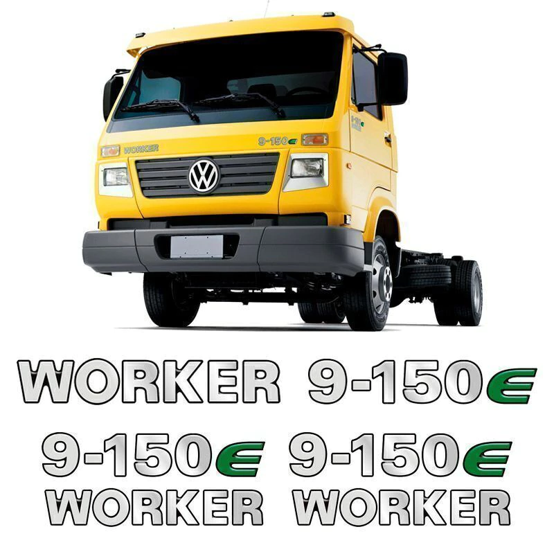 Kit Emblemas 9-150E Worker Adesivo Volkswagen Caminhão Cromado Resinado