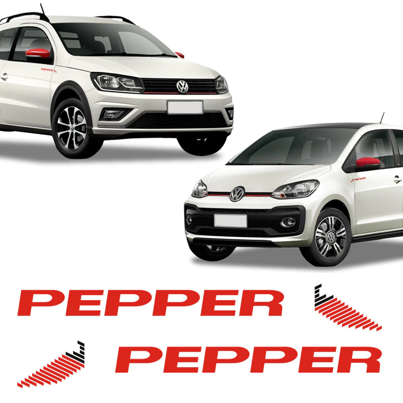 Kit Adesivos Up! e Saveiro Pepper 2018 2019 2020 Emblema Lateral -