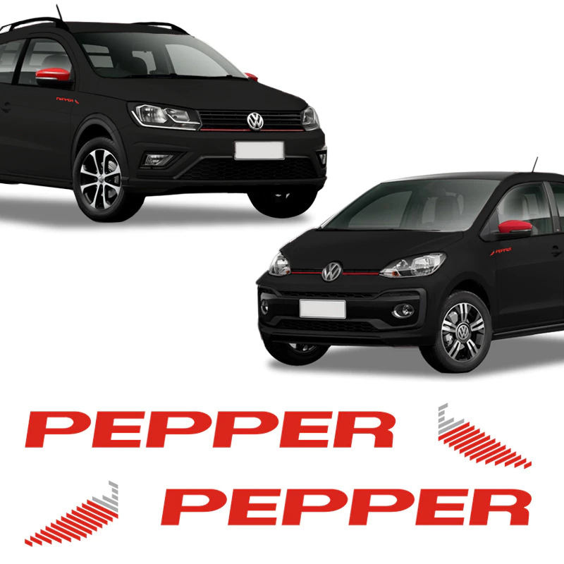 Kit Adesivos Up! e Saveiro Pepper 2018 2019 2020 Emblema Lateral -
