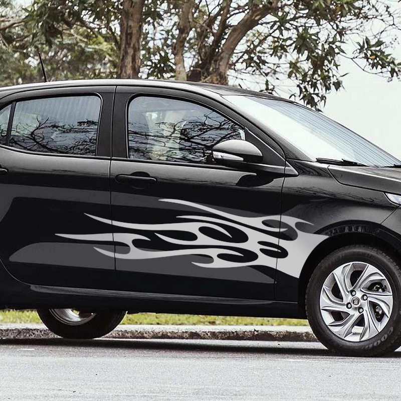Faixa Adesivo Lateral Tuning Chamas Tribal Personalizado Prata Decorativo Carro