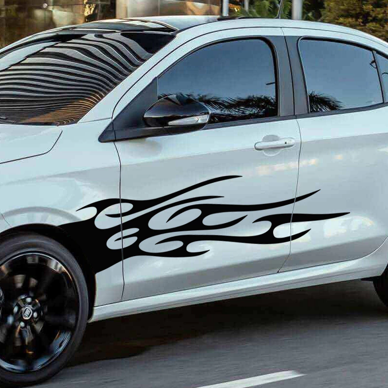 Faixa Adesivo Lateral Tuning Chamas Tribal Personalizado Preto Decorativo Carro
