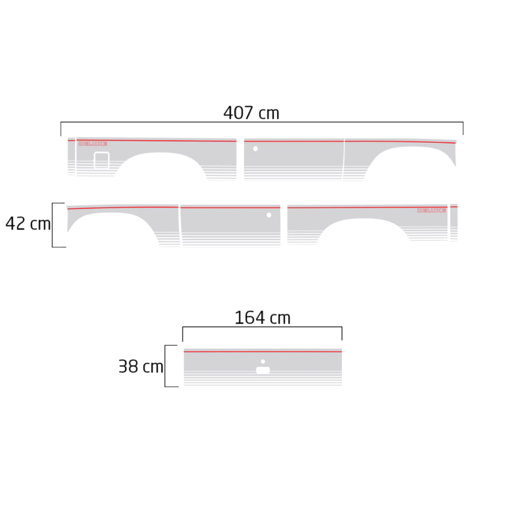 Quantidade: 1 Jogo completo de faixas para ambos os lados + 1 Faixa Tampa Traseira