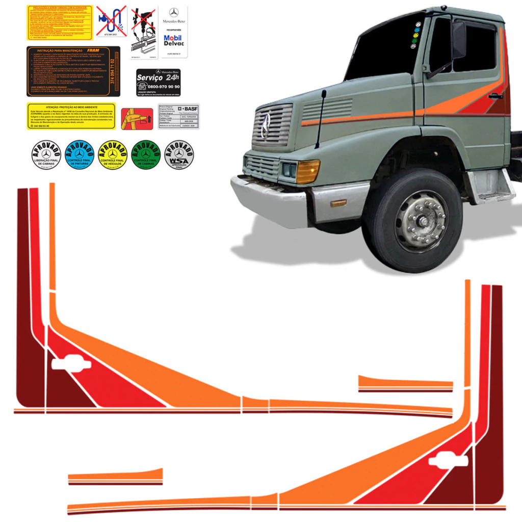 Faixa Caminhão Mercedes Benz 709, 912, 1618 + Adesivos Etiquetas Advertência e Aprovado do Para-brisa -