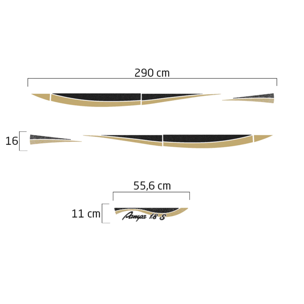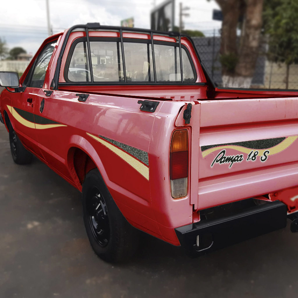 _x000D_Kit Faixa Ford Pampa 1.8 S 1995 Adesivo Lateral + Faixa Traseira Dourado/Preto + Etiquetas do Motor -
