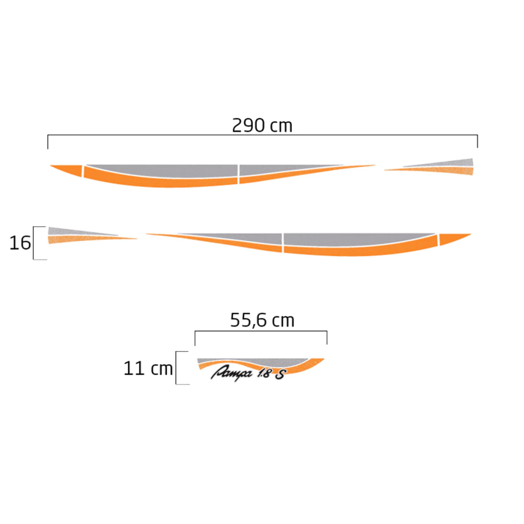 _x000D_Kit Faixa Ford Pampa 1.8 S 1995 Adesivo Lateral + Faixa Traseira Laranja/Prata + Etiquetas do Motor -
