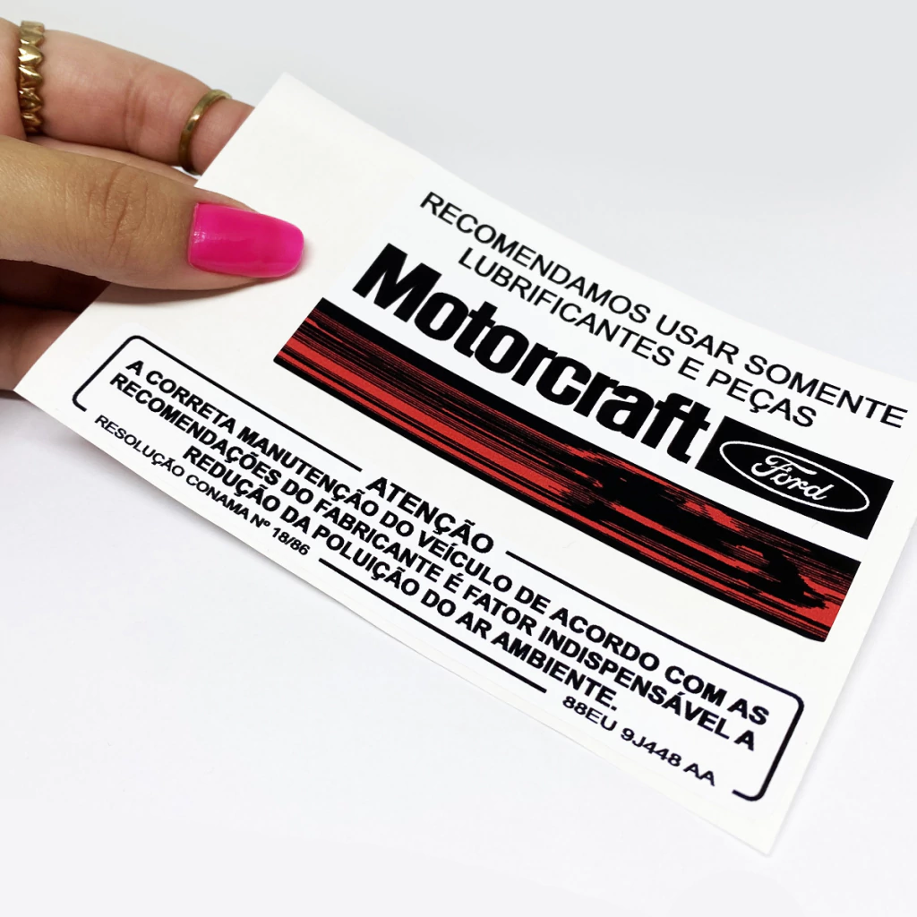 1 Adesivo Motorcraft / Fabricado em Vinil Branco / Dimensões: 9,3 x 4,7 cm
