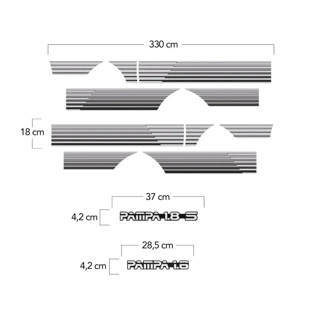 Kit Faixa Lateral + Adesivo Traseiro Compatível Com Pampa 1.8 S 1994 + Etiquetas para Motor.