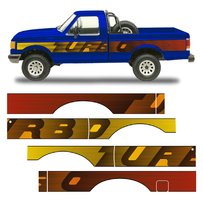 _x000D_Jogo De Faixas F-1000 Turbo 1993 Cabine Simples Adesivo Lateral Amarelo -