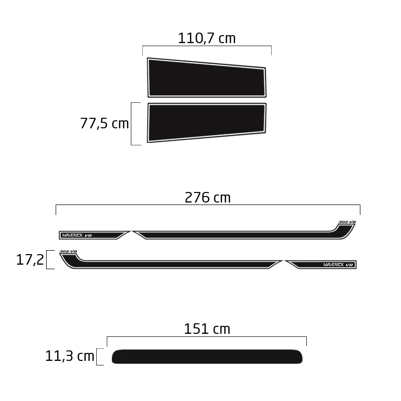 1 Jogo de Faixas Laterais Maverick V8 / Fabricado em Vinil / Dimensões: 68 x 8 cm