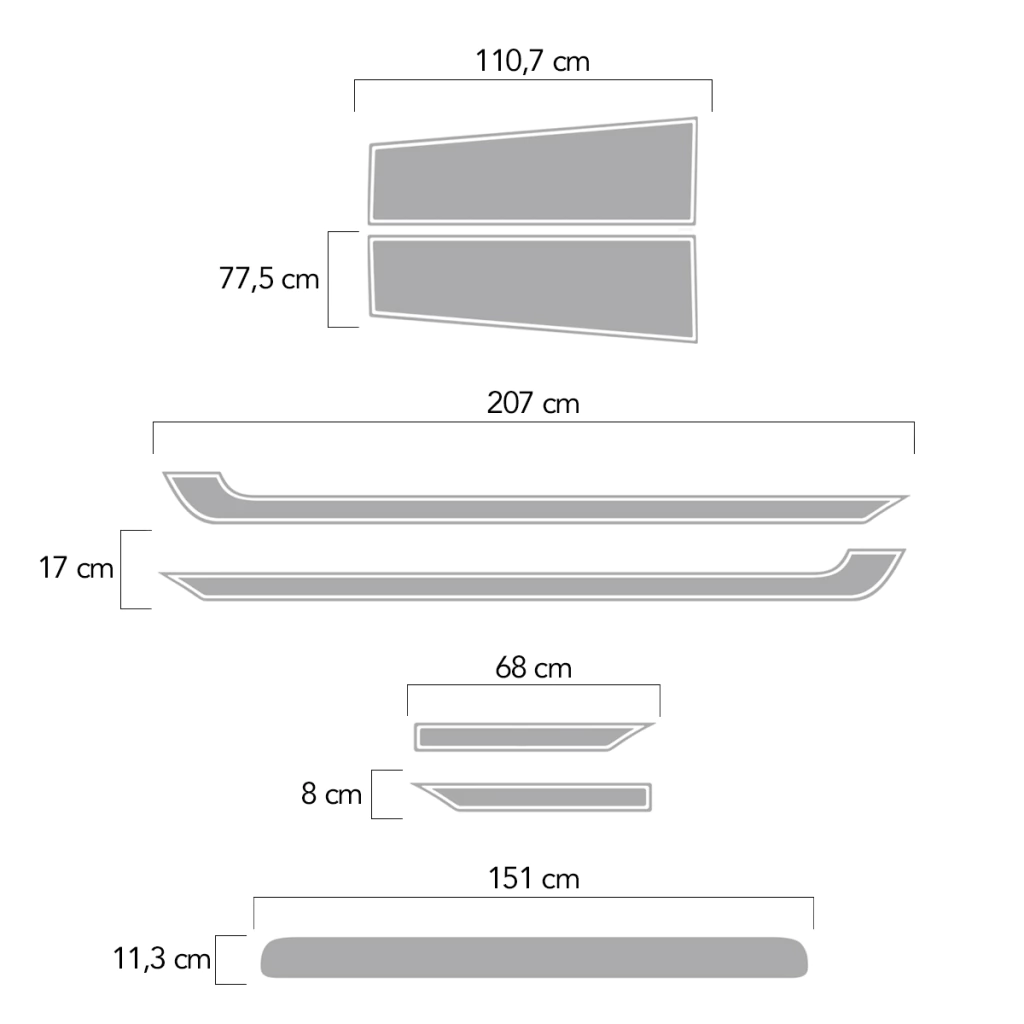 1 Jogo de Faixas Laterais / Fabricado em Vinil / Dimensões: 207 x 17 cm