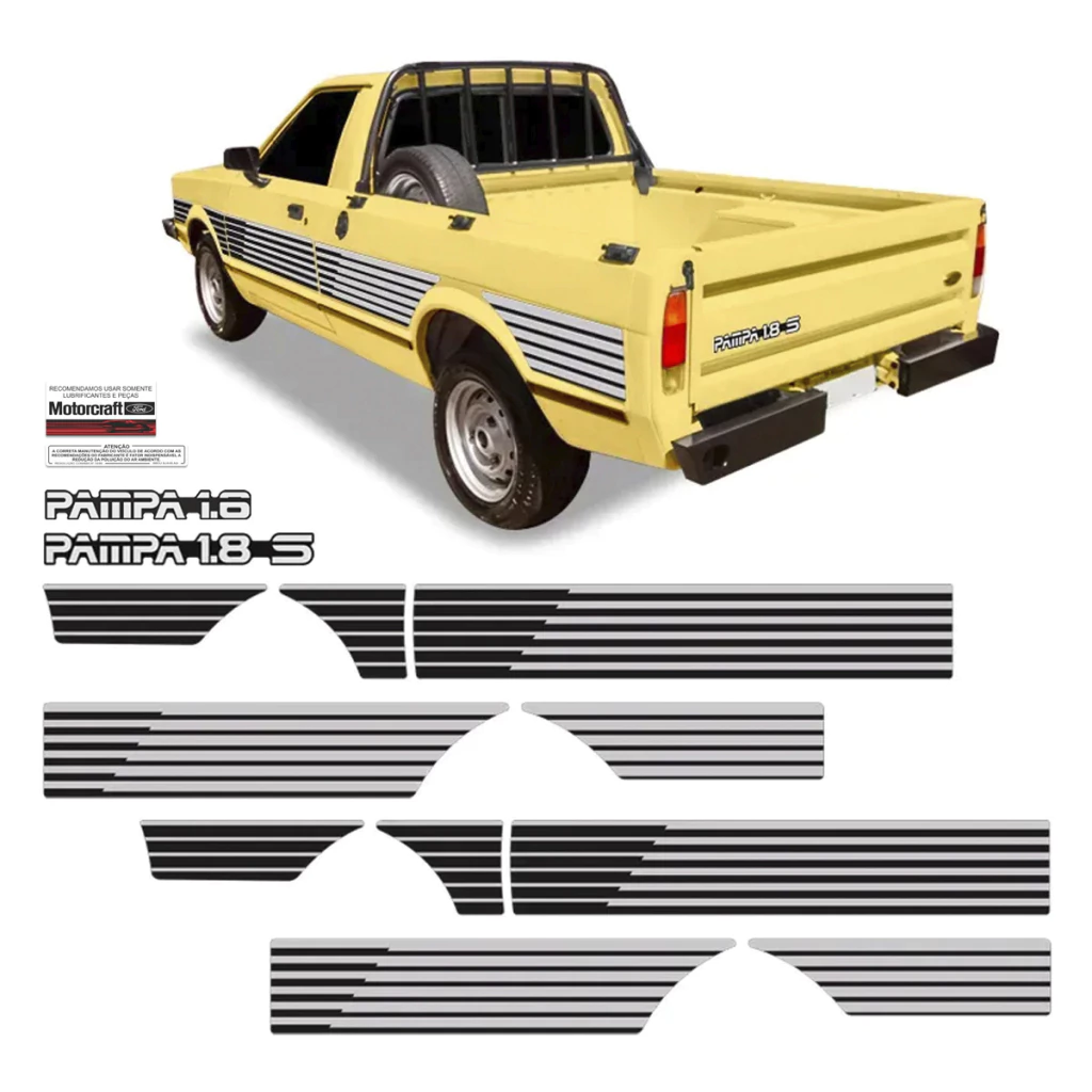 Kit Faixa Lateral + Adesivo Traseiro Compatível Com Pampa 1.8 S 1990 + Etiquetas para Motor.