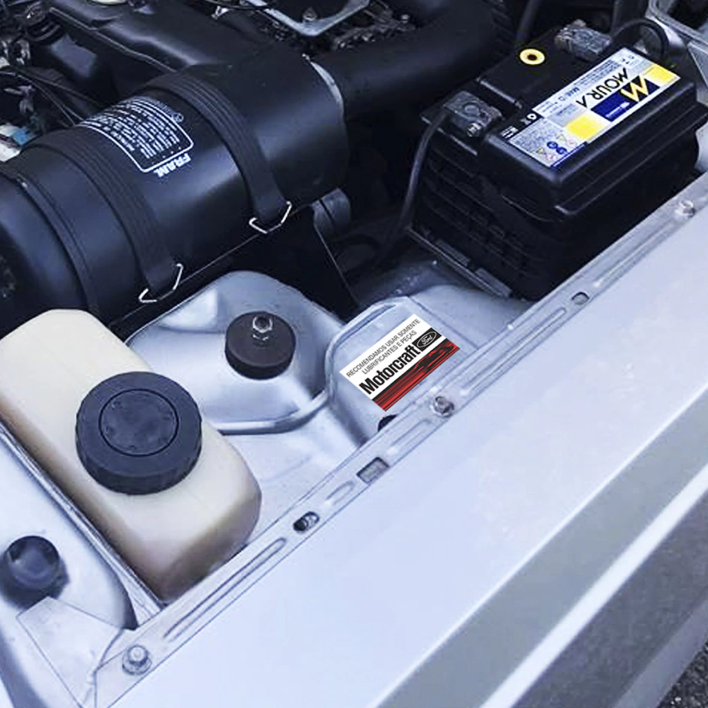 1 Adesivo de Motor Atenção / Fabricado em Vinil Branco / Dimensões: 12 x 1,9 cm