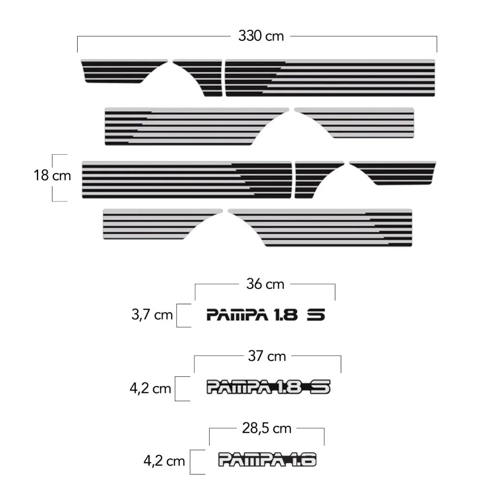 Quantidade: 1 Jogo de Faixas Laterais + Adesivo Traseiro Pampa + Etiquetas Para Motor