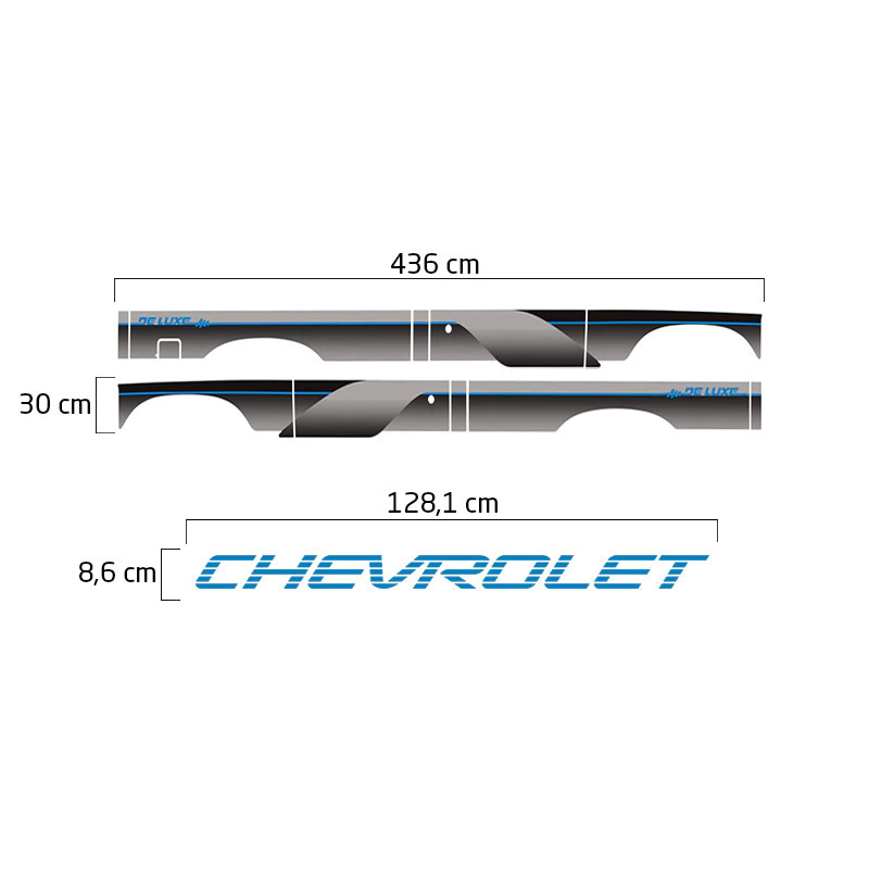 1 Faixa Traseira Chevrolet / Fabricado em Vinil / Dimensões: 128,1 x 8,6 cm