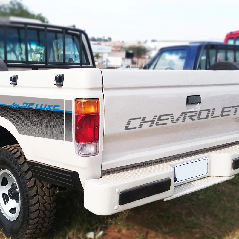Kit Faixas Lateral Azul D20 Deluxe 1993 1994 Adesivos Cabine Simples + Faixa Traseira Chevrolet Grafite