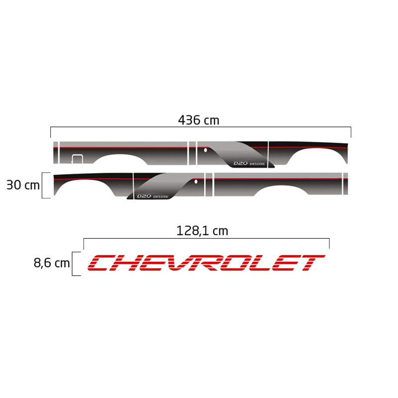 Kit Faixas D20 Deluxe 1995 1996 Adesivos Cabine Simples + Faixa Traseira Chevrolet Vermelho