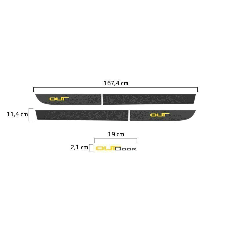 Quantidade: 1 Kit Completo de Faixas Duster Outdoor; 4 Soleiras; 4 Protetores
