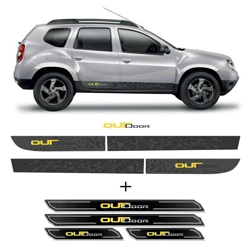 Kit Faixa Duster Outdoor 2015 Adesivo Lateral Completo + Soleira da Porta Com Black Over