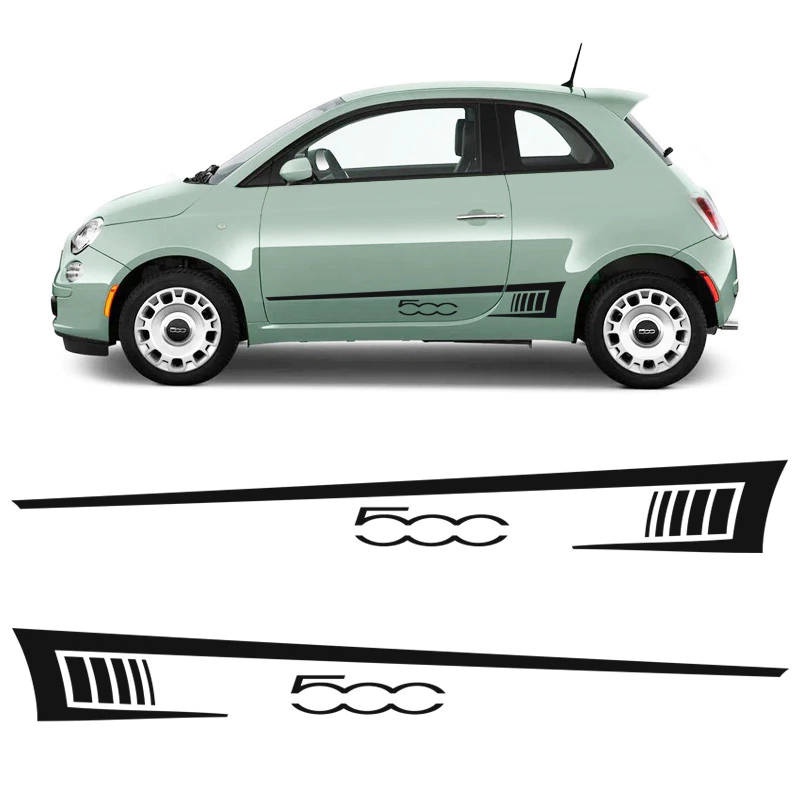 Kit Faixa Lateral Fiat 500 Sport Adesivo Preto Personalizado Decorativo p/ Portas
