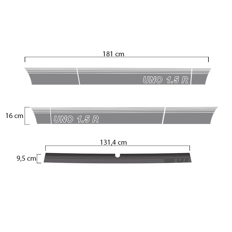 Faixa Fiat Uno 1.5 R Adesivo Lateral E Traseiro Completo - Grafite