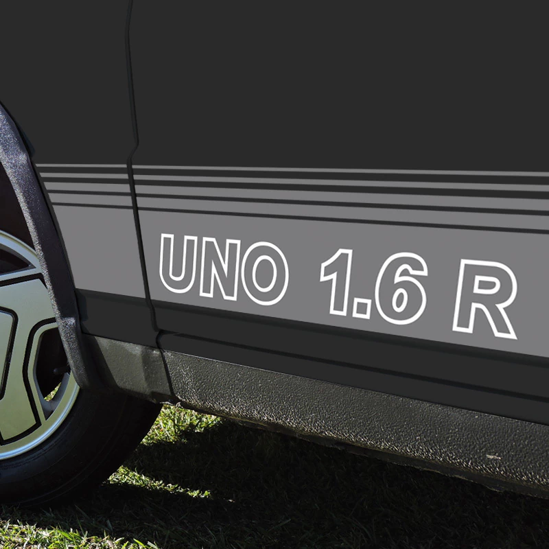 Faixa Fiat Uno 1.6 R Adesivo Lateral E Traseiro Completo - Grafite
