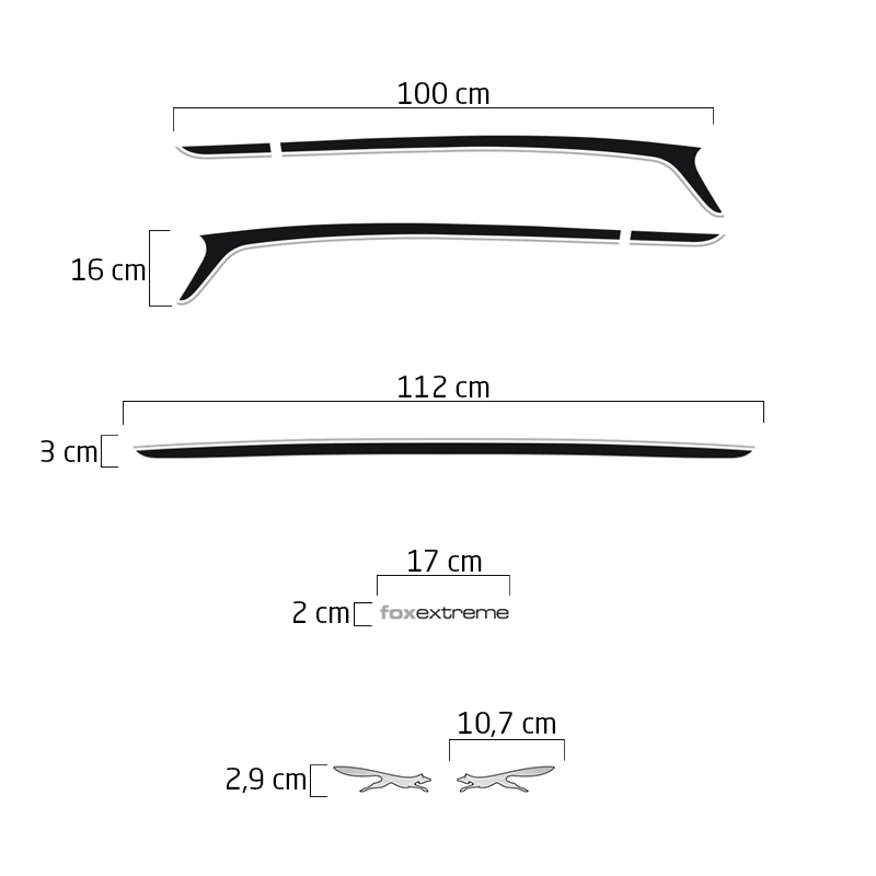 _x000D_Kit Completo Faixa Lateral/Traseira Fox Extreme 2008 Adesivo Preto com Filete Cinza + Emblema Raposa Resinado -